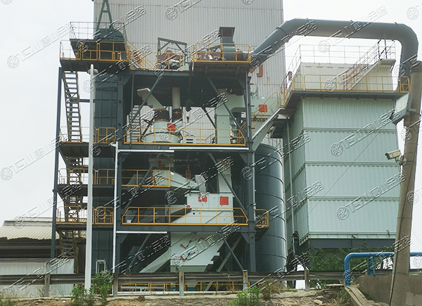 原料經(jīng)過電子秤進入到皮帶輸送機中,由全封閉的提升機將物料入到五孔碾磨制砂機內(nèi)進行破碎處理,再由空氣篩對破碎后的物料進行篩分、選粉處理,篩分后的較大物料會返回五孔碾磨制砂機中進行二次破碎,符合要求的砂子則由傳送帶輸送至成品倉中;篩分過程中的粉塵會經(jīng)粗細(xì)粉分離機進入到布袋收塵器內(nèi),而其中較大的粗顆粒會在粗細(xì)粉分離機的作用下,按需求在成品砂中進行回?fù)?,?xì)粉塵將通過風(fēng)力進入到布袋收塵器,作為副產(chǎn)品進行使用。